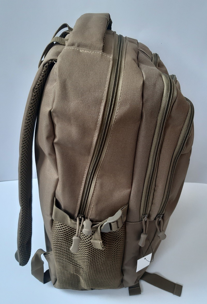 Hnedý turistický ruksak s obsahom 25L. Má dve veľké komory so zipsovým zapínaním vnútri na chrbtovej časti je otvorená priehradka. Dve predné vrecká so zipsovým zapínaním a bočné vrecká na fľašku zo sieťového materiálu. Nastaviteľné polstrované popruhy s plastovými sponami.
