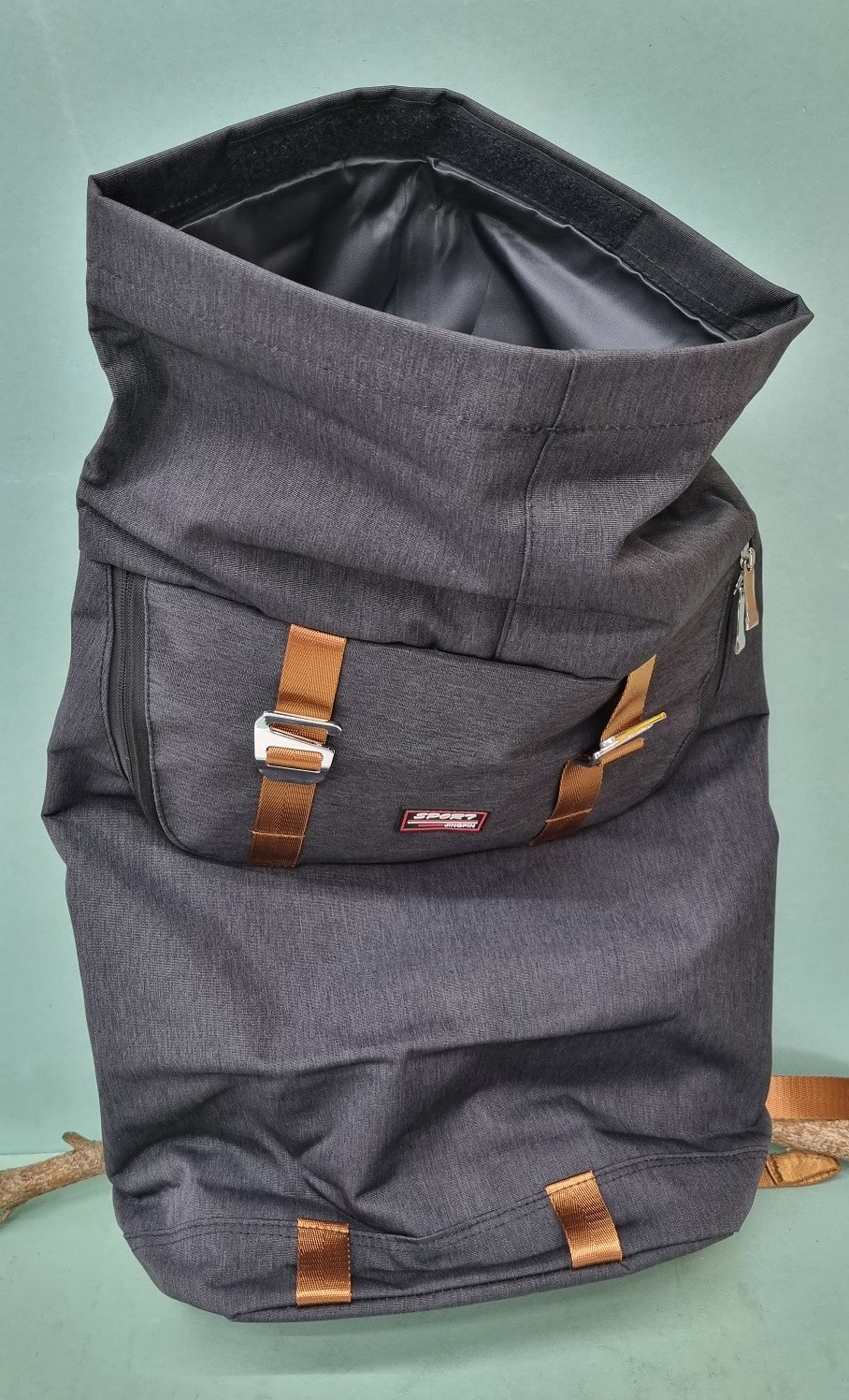 Elegantný jednokomorový ruksak s vrchným rolovacím zapínaním na suchý zips s popruhmi na pevné zatvorenie s kovovými sponami. Má jeden predný otvor na zips a jeden bočný malý otvor na zips. Veľký bočný otvor na zips, ktorým sa jednoducho dostanete do vnútra batoha. Vo vnútri má jeden vak na fľašu , jednu priehradku na notebook a dve malé priehradky. Je to ruksak vhodný pre študentov, ale aj do práce.