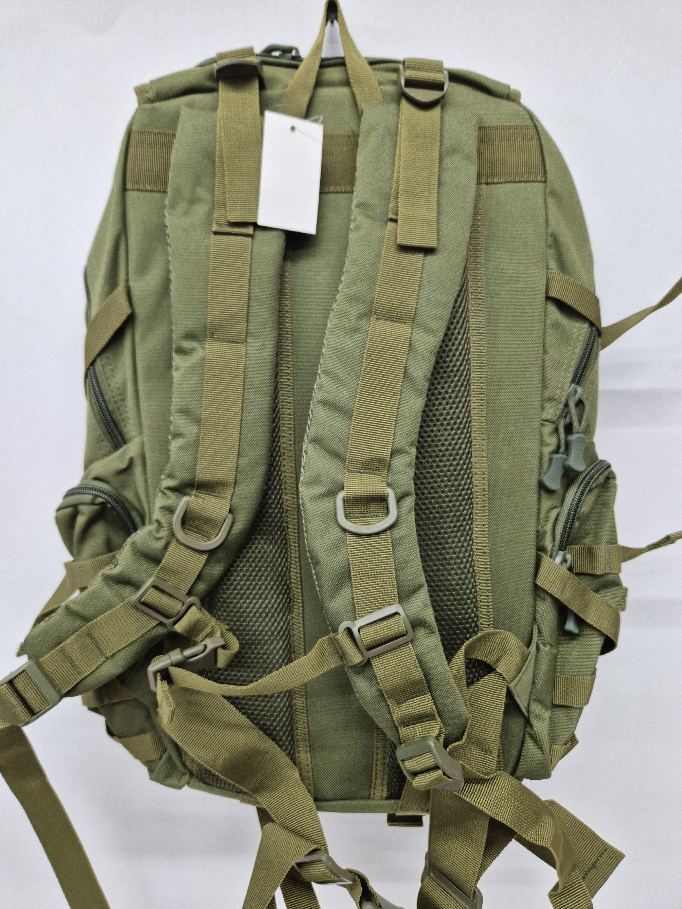 Dvojkomorový zelený ruksak o objeme 25L. Má štyri predné vrecká a dve bočné vrecká so zipsovým zapínaním. Chrbát je vystužený, vo vnútri je priehradka na notebook. Ramenné popruhy sú polstrované a nastaviteľné s plastovými sponami.