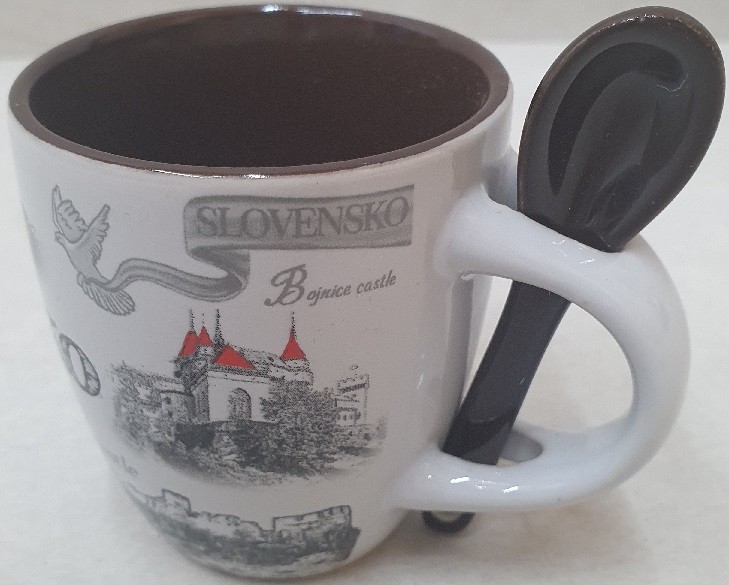 Keramická šálka na kávu s čiernym motívom Slovensko. Balenie obsahuje aj keramickú lyžičku. Obsah hrnčeka je cca 150ml.Tento produkt je skvelým darčekom pre každého, kto má rád Slovensko, jeho kultúru a pamiatky. Je vhodný na rôzne príležitosti, alebo pre hostí a návštevy zo zahraničia.