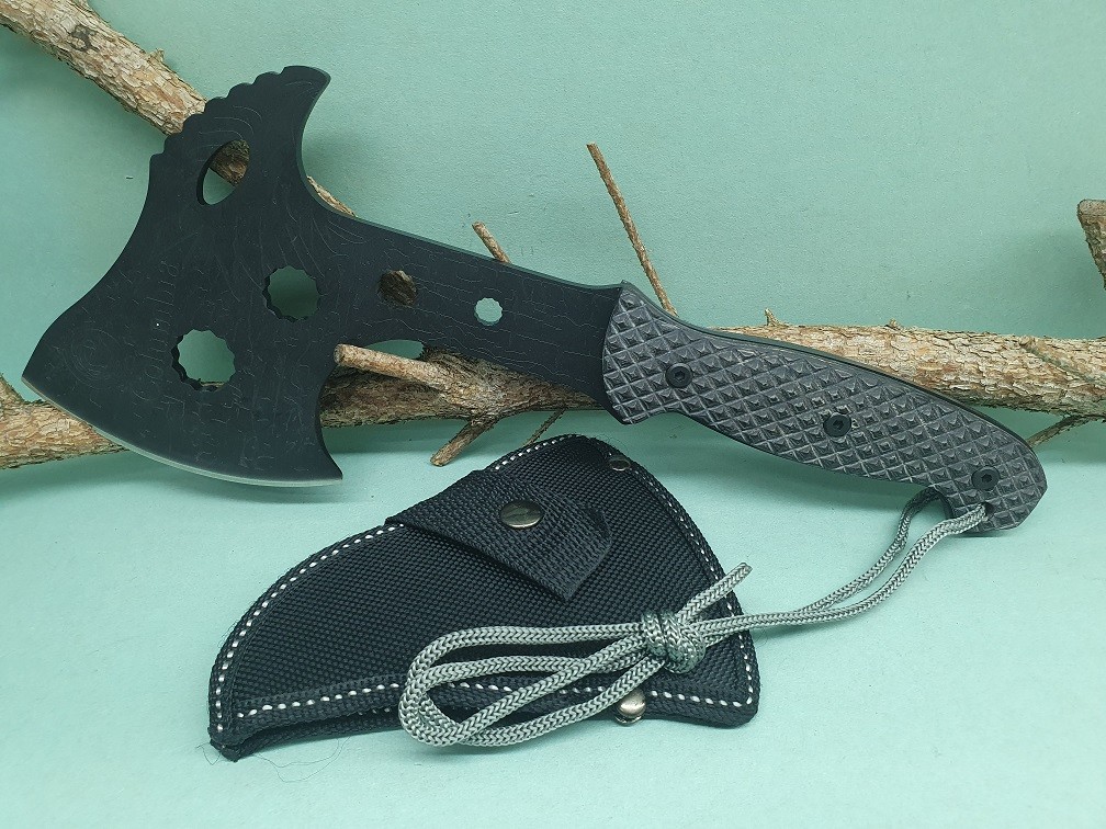 Praktická sekerka je kompaktná a ľahká, jednoducho ju zbalíte do batoha. Je vyrobená z antikoróznej ocele s hrúbkou 3,5 mm a čepeľ je potiahnutá čiernym oxidom. Rukoväť je vyrobená z gumovej zliatiny s protišmykovým povrchom.