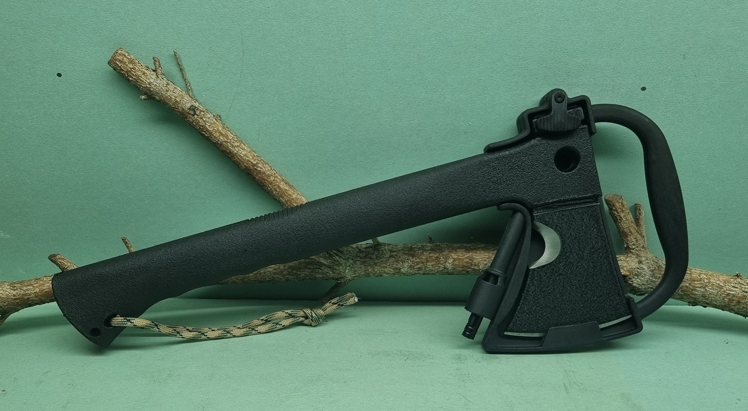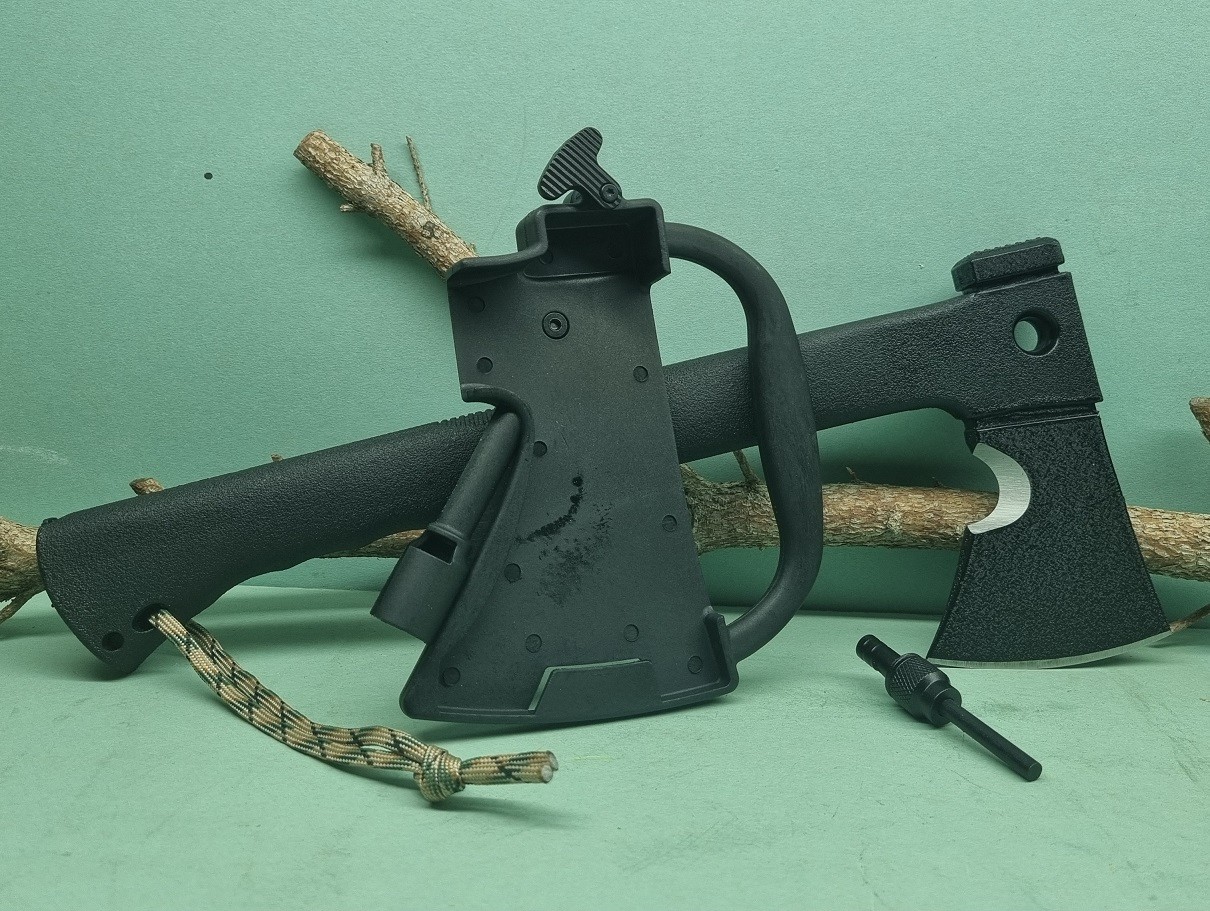 Ľahká a zároveň pevná sekerka s modernou konštrukciou. Odoberateľné plastové púzdro s poistkou. Púzdro má aj vyklopný resp. otočný prevlek, vhodný na zavesenie na opasok alebo na batoh. Súčasťou puzdra je aj miesto na uloženie kresadla. kresadlo je zároveň aj píšťalka v núdzi. V rúčke sekerky sa nachádza turistický nôž. Všetko je dobre ukryté a zároveň po ruke.