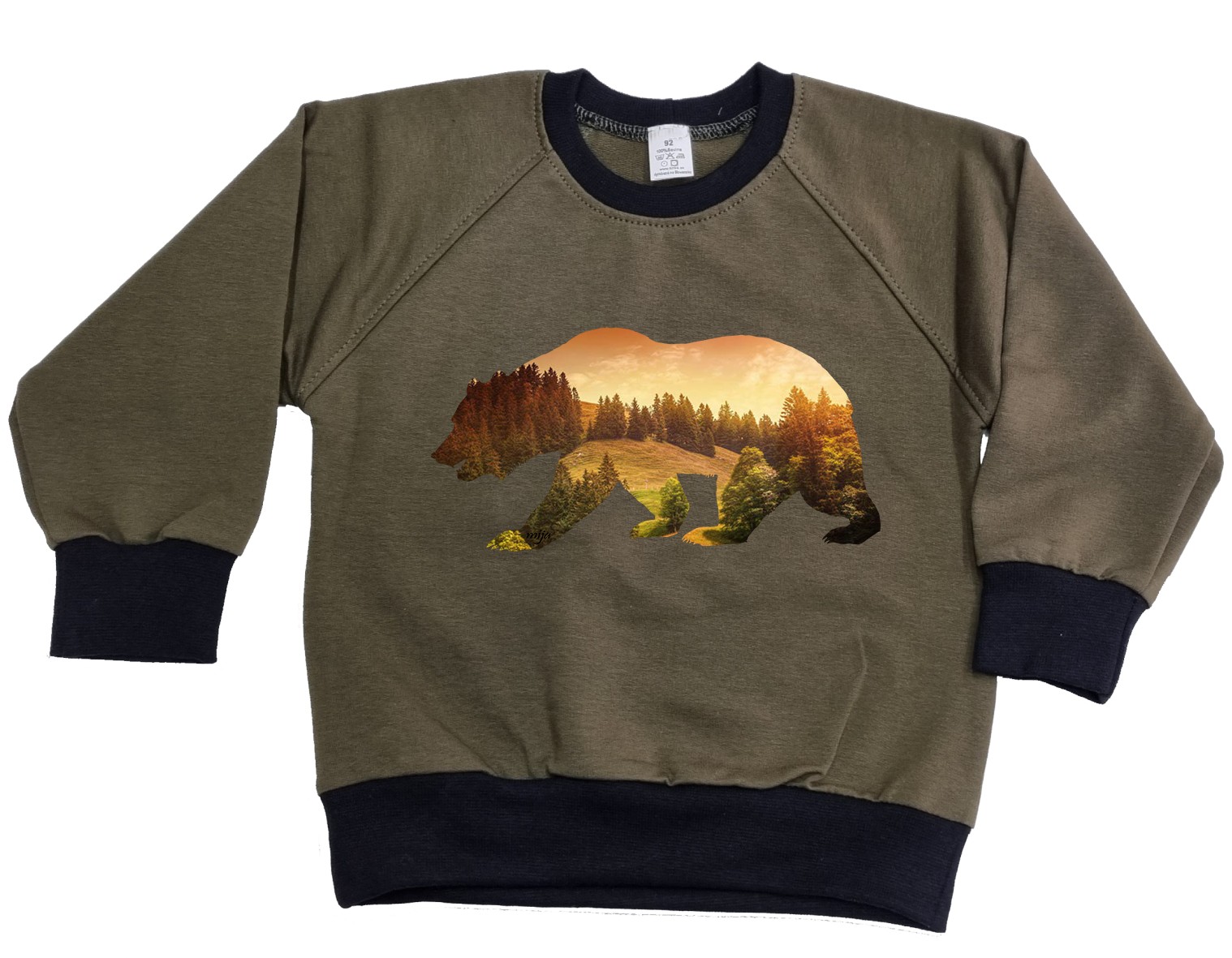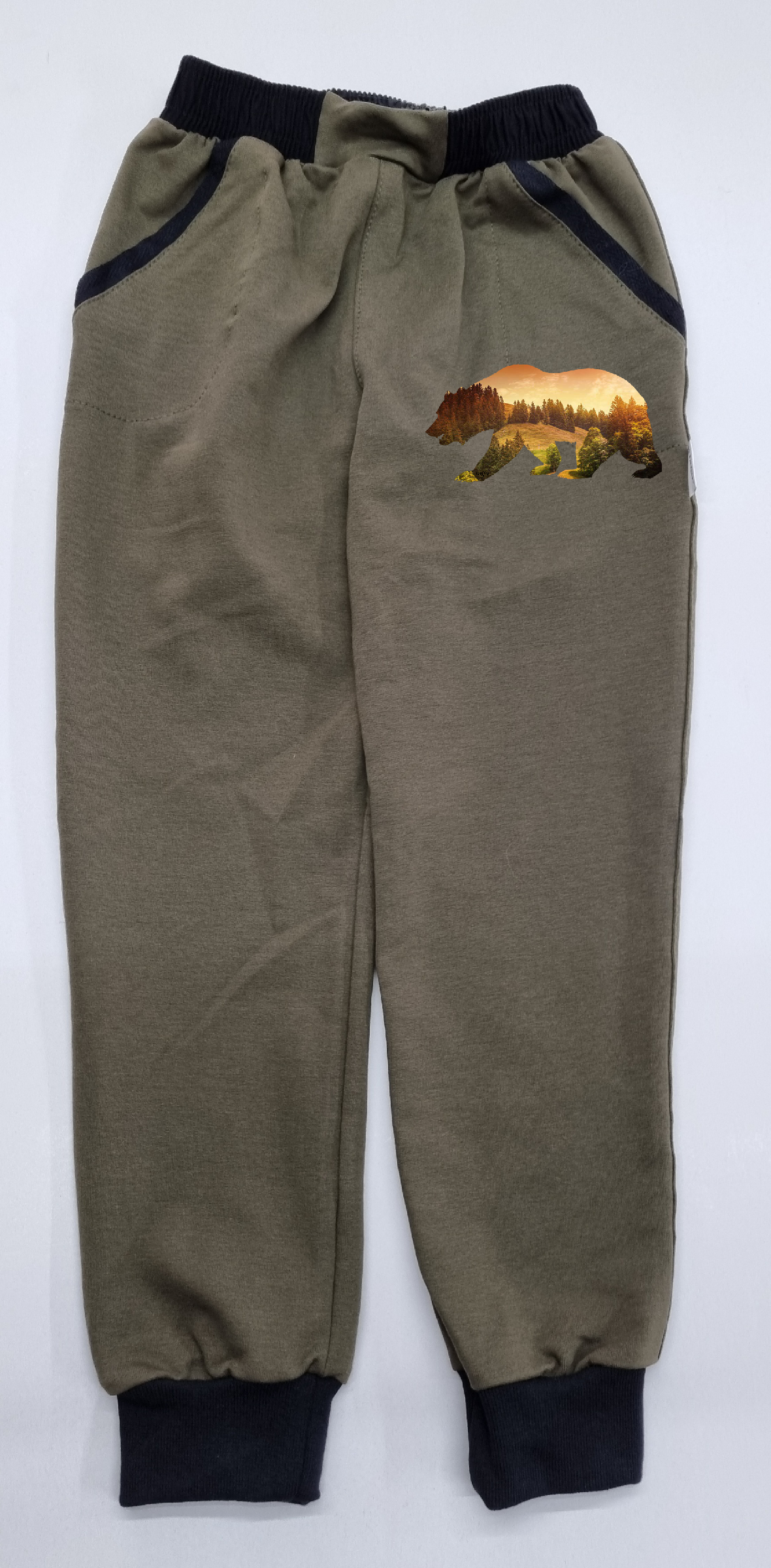 Tepláková súprava s dlhým rukávom, poľovníckym  motívom Medveď je ideálnym oblečením pre malých dobrodruhov a milovníkov prírody. Zložením z 100% bavlny je táto súprava priedušná a pohodlná na nosenie, čo je dôležité pre aktívne deti.