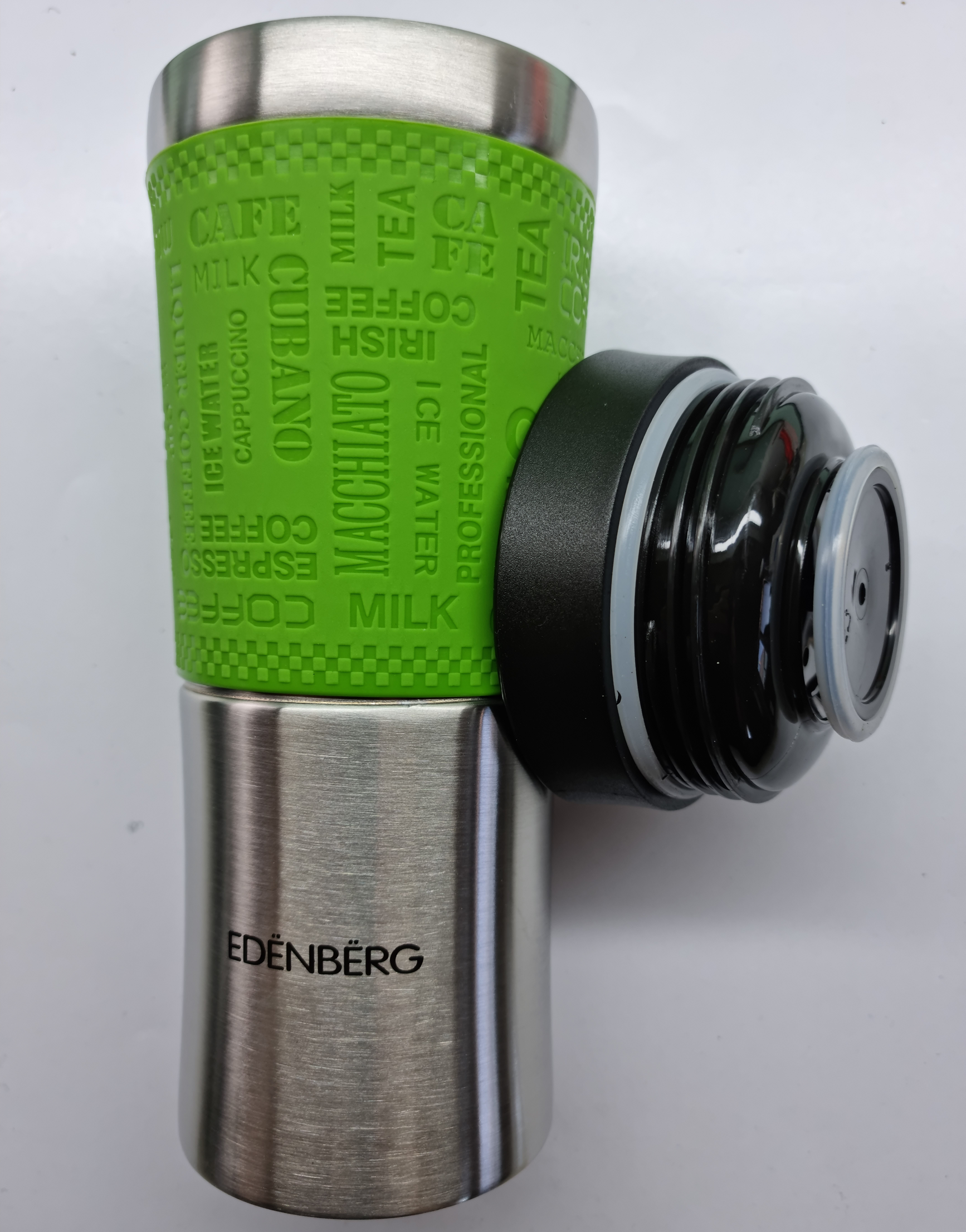 Termopohár má vnútorný aj vonkajší nerezový plášť. Vhodný na teplé a studené nápoje na cesty, do kancelárie či záhrady. Po obvode termosky je protišmykový povlak. Má šróbovací vrchnák, ktorý však nemusíte odšróbovať, keď sa chcete napiť , termoska má automatickú zátku(stačí stlačiť tlačítko, aby ste termosku otvorili alebo zatvorili). Tvar je vhodný aj do držiaka na nápoje v aute. Objem termosky je 480 ml.