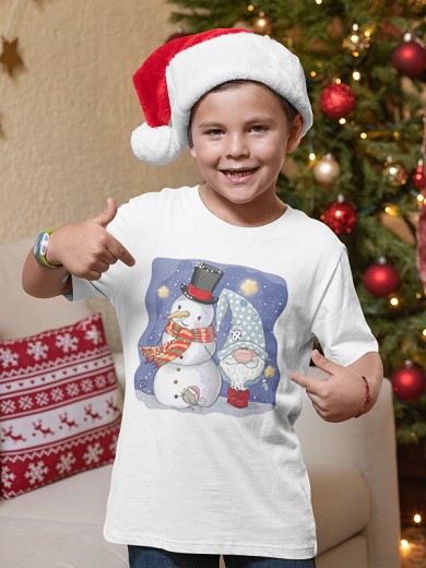 Tričko s vianočný motívom Snehuliak. S hmotnosťou 160g a zložením z 100% bavlny je toto tričko ľahké, priedušné a pohodlné na nosenie, čo je dôležité pre aktívne deti.