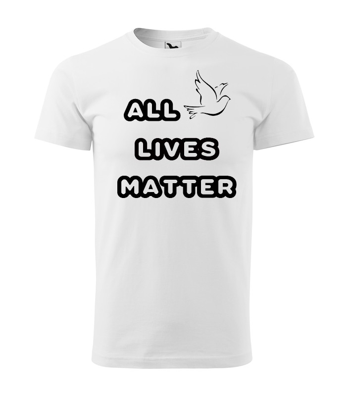 Kvalitné tričko s krátkym rukávom s nápisom All lives matter. Je vyrobené zo 100% bavlny má pohodlný strih a ľahkú váhu 160g / m2 , čo zabezpečuje prijemné nosenie v akomkoľvek počasí , tričko je vhodné na bežné použitie .