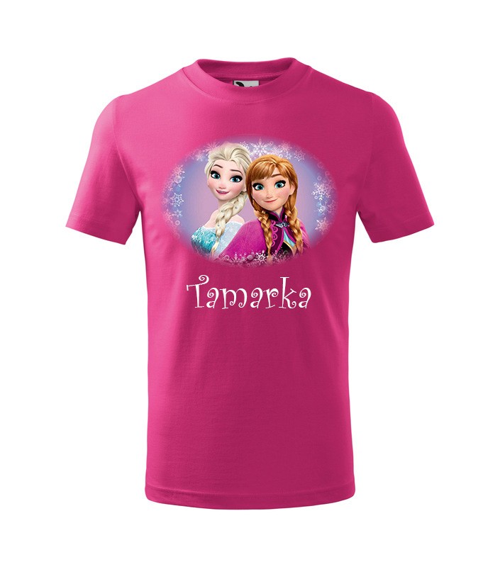 Úvod » Oblečenie » Detské » Tričko krátky rukáv » Detské motívy » Tričko s motívom Anna a Elsa kruh Malinová 122