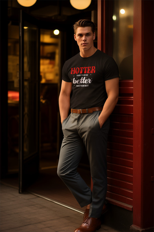Kvalitné tričko s krátkym rukávom s nápisom: HOTTER than your ex better than your next. Je vyrobené zo 100% bavlny má pohodlný strih a ľahkú váhu 160g / m2 , čo zabezpečuje prijemné nosenie v akomkoľvek počasí , tričko je vhodné na bežné použitie.