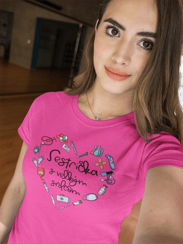 Kvalitné tričko krátky rukáv s motívom Sestrička... Je ušité zo 100% bavlny príjemnej  na každodenné nosenie, má pohodlný zúžený strih a ľahkú váhu 160g/m2 čo zabezpečuje príjemné nosenie v akomkoľvek počasí.