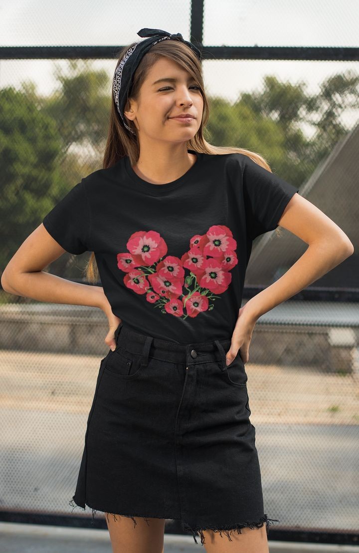 Kvalitné tričko krátky rukáv s motívom srdce. Je ušité zo 100% bavlny príjemnej  na každodenné nosenie, má pohodlný zúžený strih a ľahkú váhu 160g/m2 čo zabezpečuje príjemné nosenie v akomkoľvek počasí.