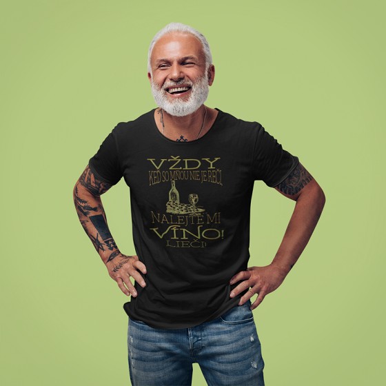 Úvod » Oblečenie » Pánske » Tričká » Vtipné trička » Tričko s motívom Vždy keď so mnou nie je reči, nalejte mi víno! Lieči