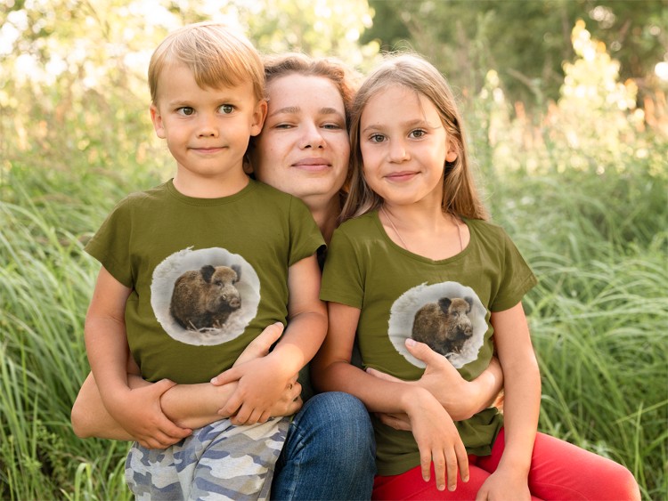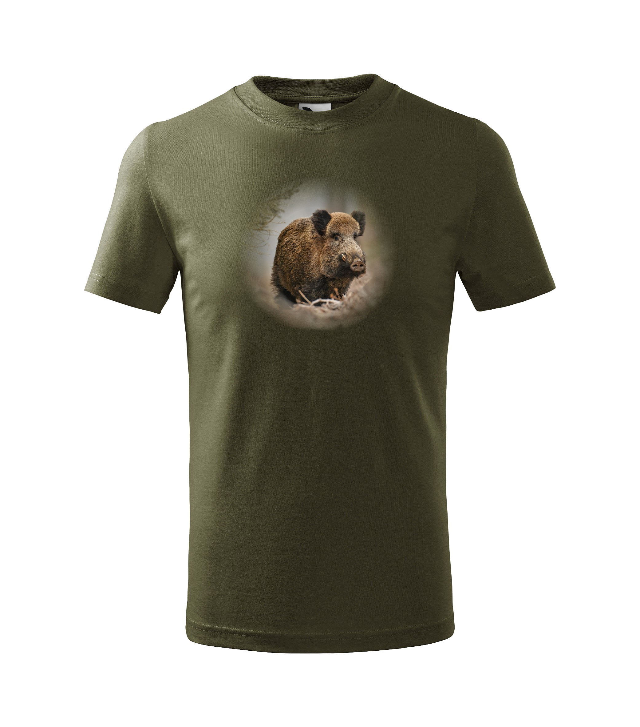 Detské tričko s krátkym rukávom, poľovníckym motívom Diviak FD1 pre malých dobrodruhov, ktorí majú radi zvieratka a prírodu.
