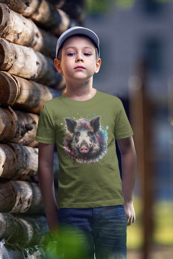 Detské tričko s krátkym rukávom, poľovníckym motívom Diviak FD2 pre malých dobrodruhov, ktorí majú radi zvieratka a prírodu.