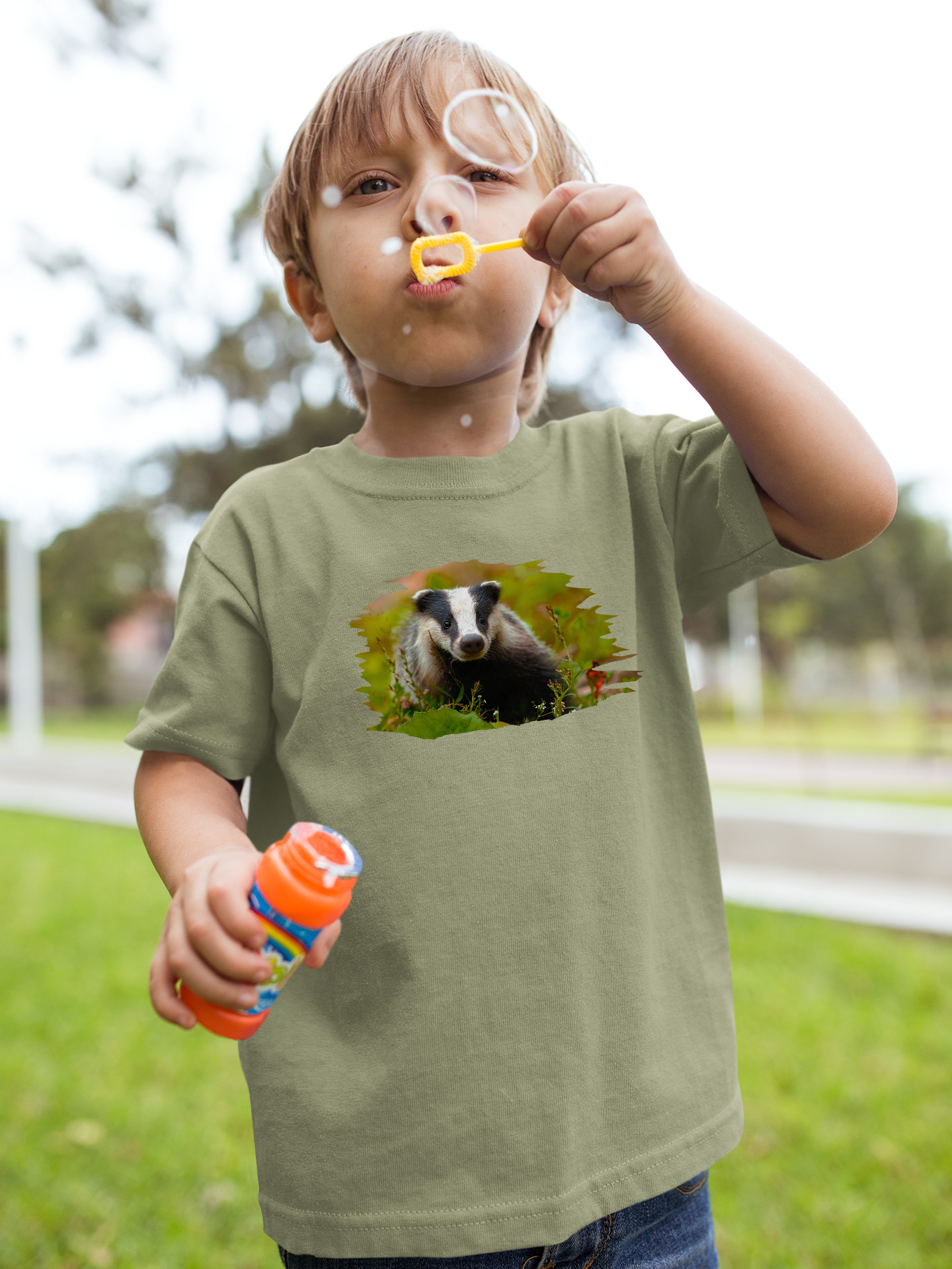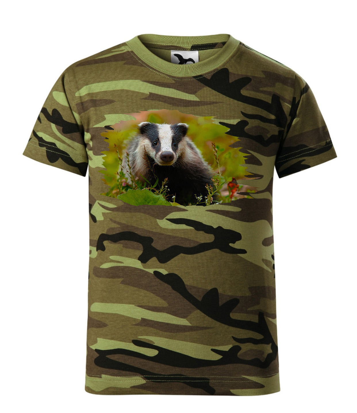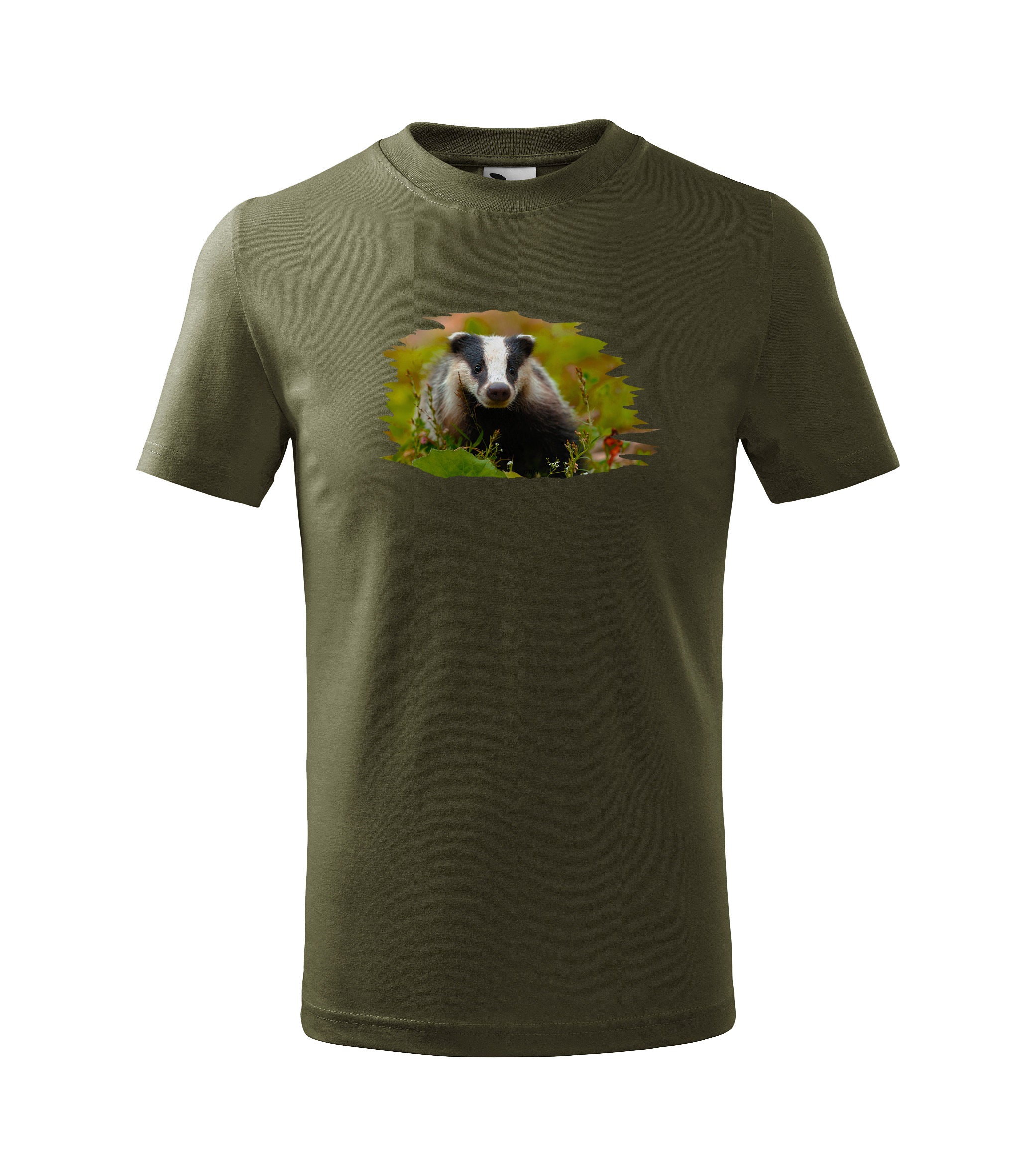 Detské tričko s krátkym rukávom, poľovníckym motívom Jazvec FJZ2 pre malých dobrodruhov, ktorí majú radi zvieratka a prírodu.