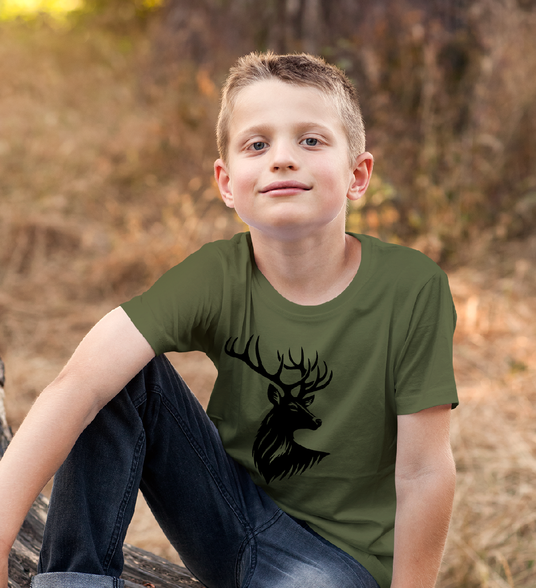Detské tričko s krátkym rukávom, poľovníckym motívom Jeleň ČJ7 pre malých dobrodruhov, ktorí majú radi zvieratka a prírodu.