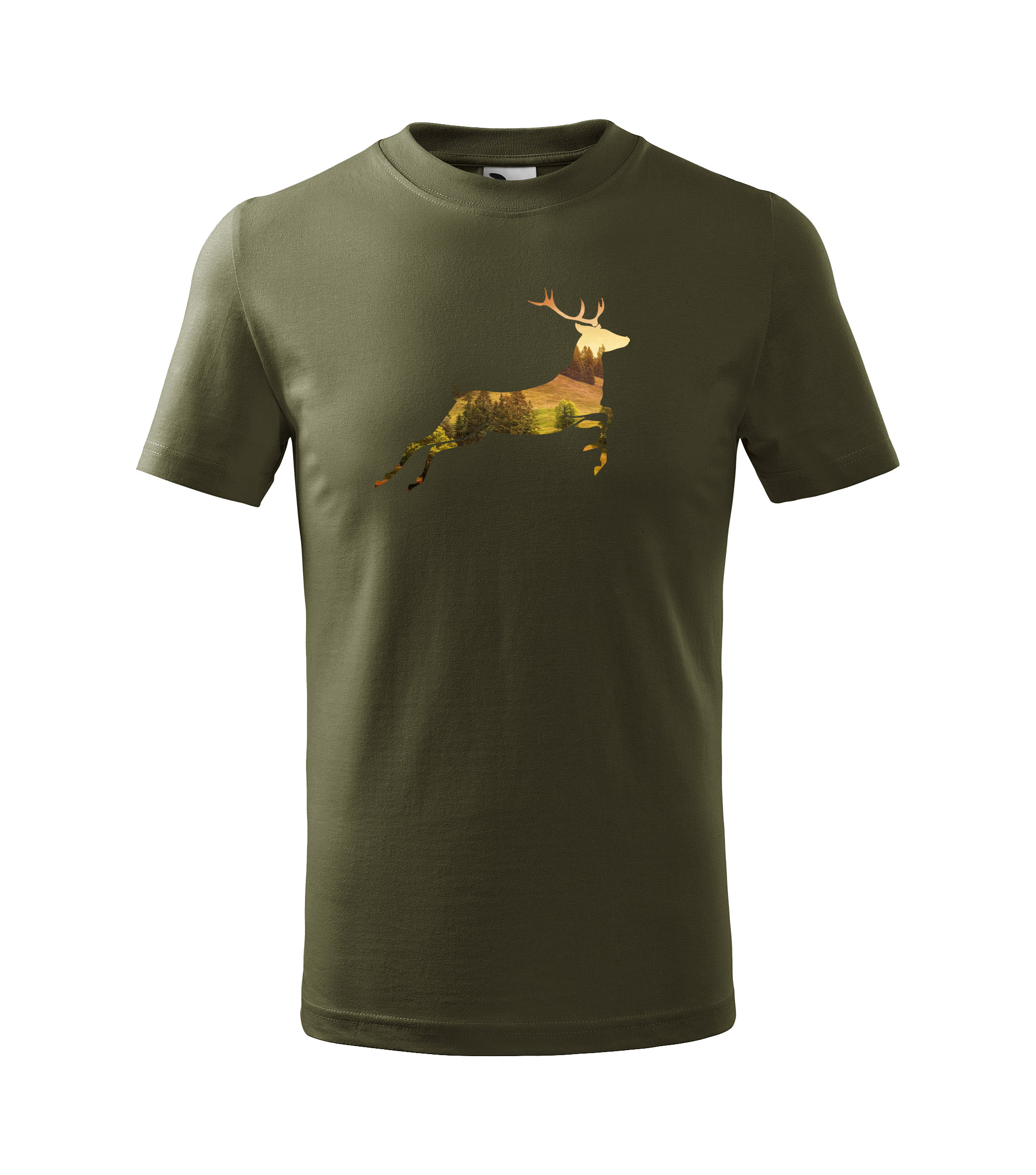 Detské tričko s krátkym rukávom, poľovníckym motívom Jeleň FJ5 pre malých dobrodruhov, ktorí majú radi zvieratka a prírodu.