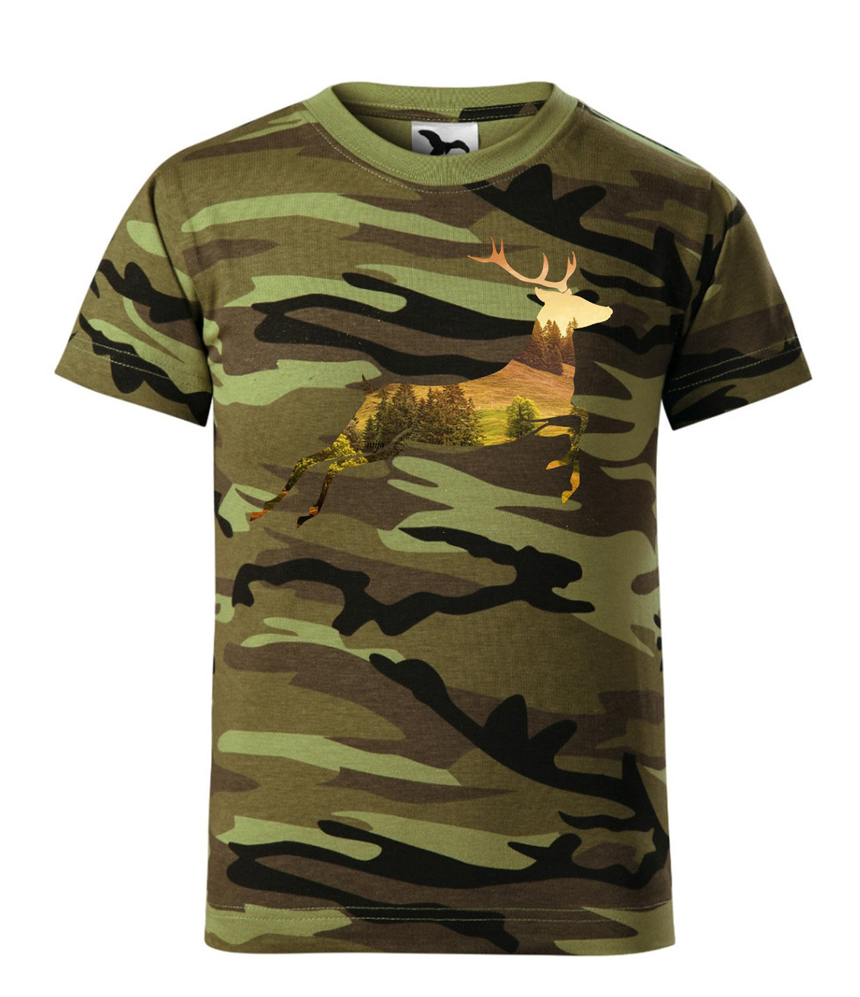 Úvod » Oblečenie » Detské » Tričko krátky rukáv » Poľovnícke Rybárske » Tričko s poľovníckym motívom Jeleň FJ5 Maskáčová 158