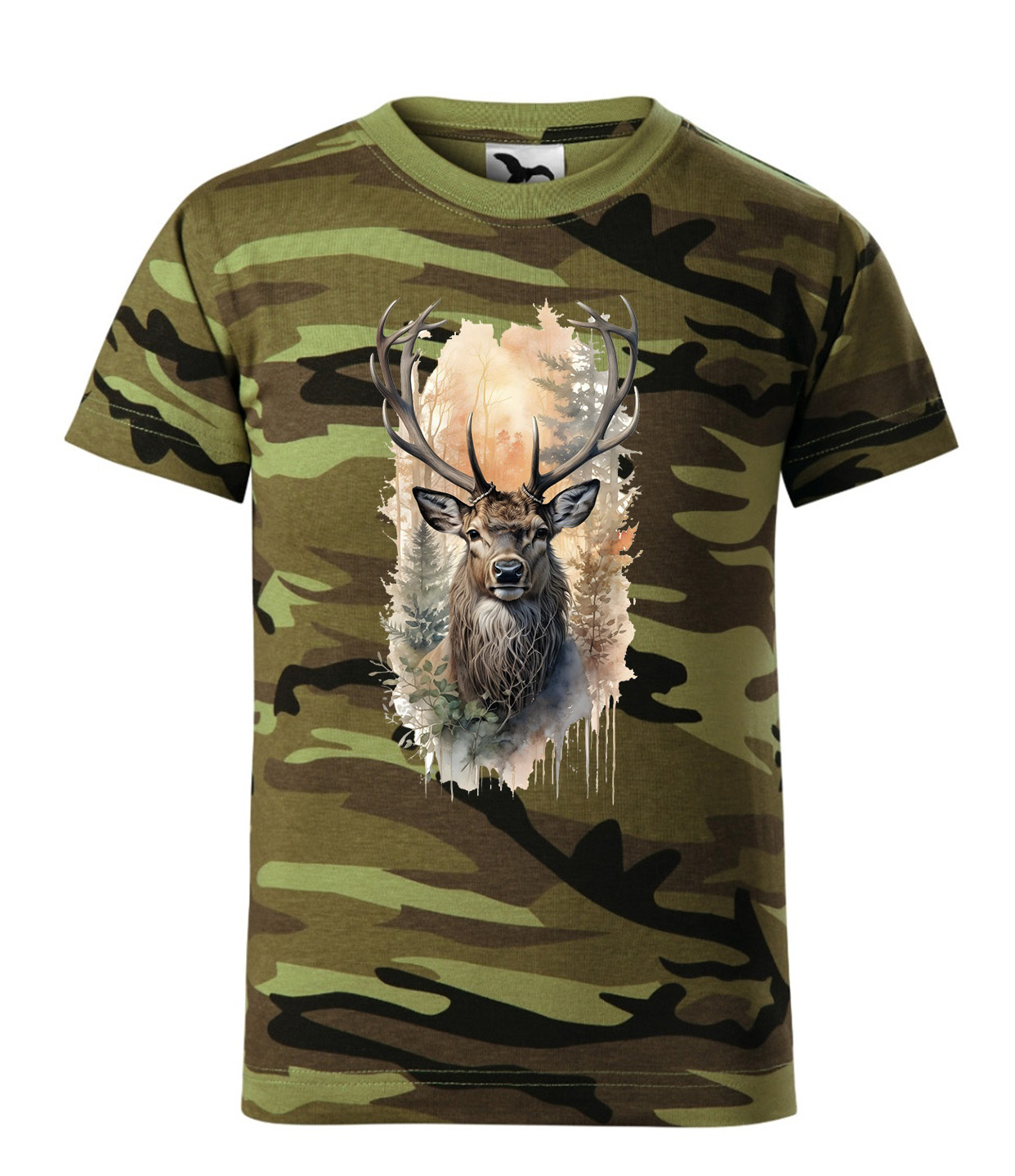 Úvod » Oblečenie » Detské » Tričko krátky rukáv » Poľovnícke Rybárske » Tričko s poľovníckym motívom Jeleň FJ6 Maskáčová 134