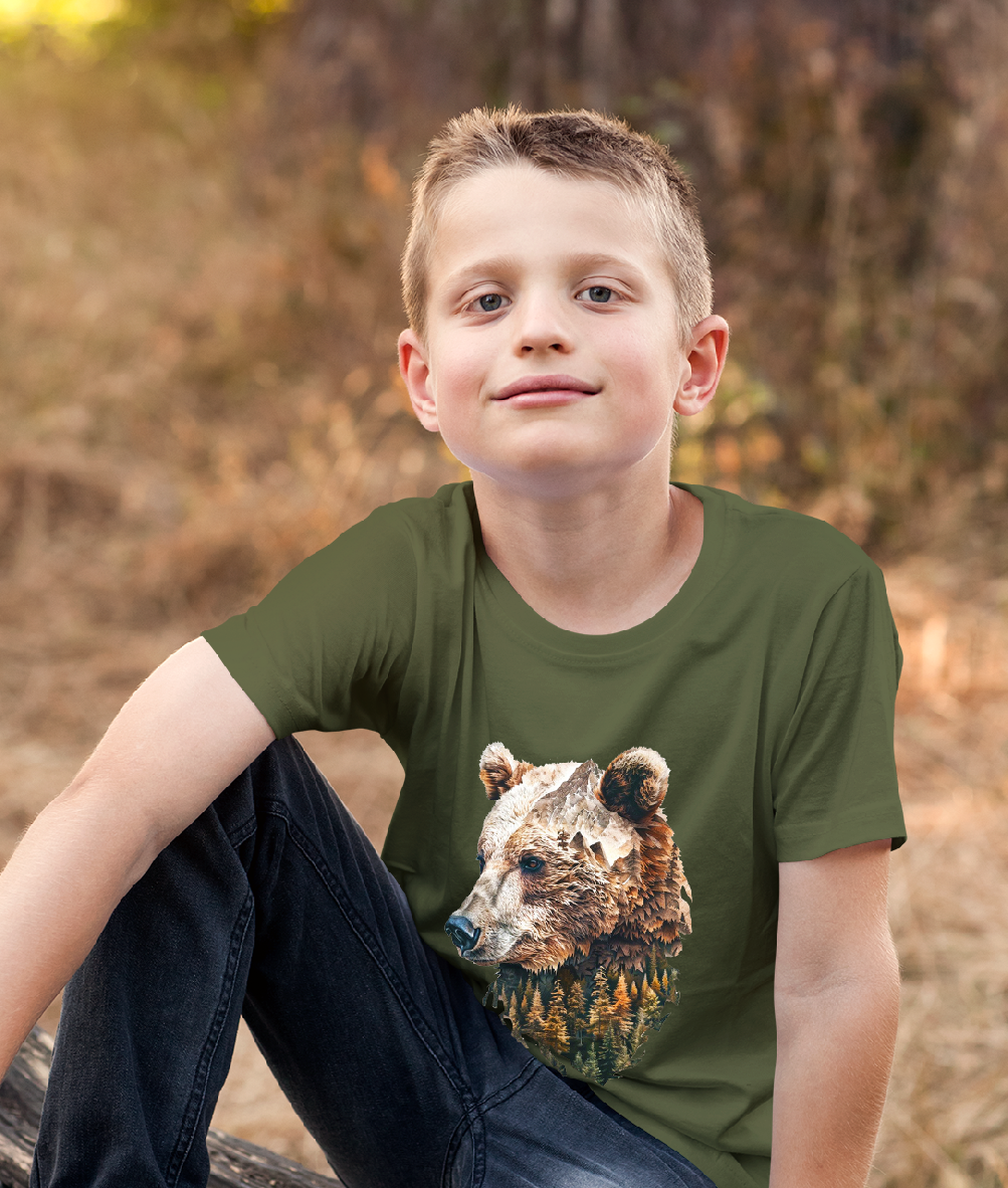 Detské tričko s krátkym rukávom, poľovníckym motívom Medveď FM3 pre malých dobrodruhov, ktorí majú radi zvieratka a prírodu.
