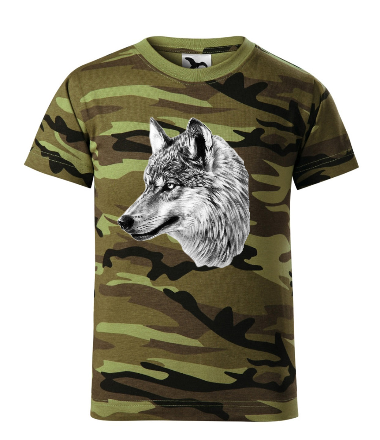 Detské tričko s krátkym rukávom s poľovníckym motívom Vlk ČV1 pre malých dobrodruhov, ktorí majú radi zvieratka a prírodu.