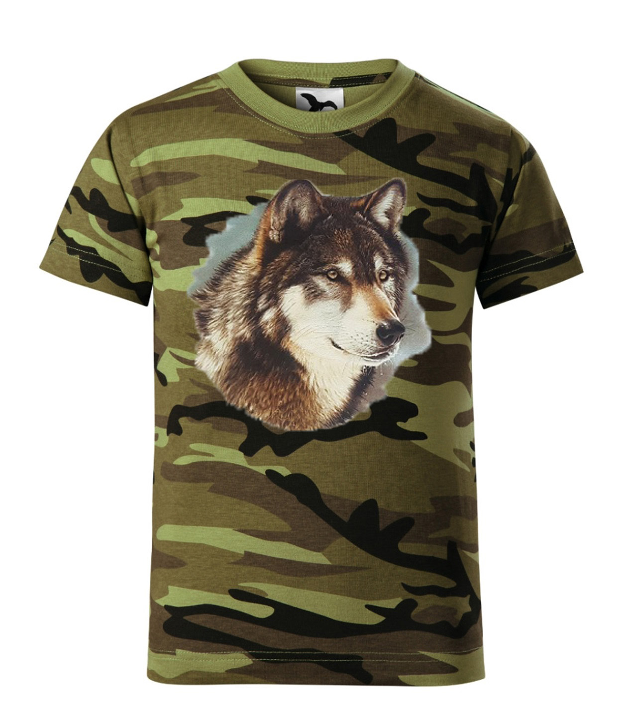 Úvod » Oblečenie » Detské » Tričko krátky rukáv » Poľovnícke Rybárske » Tričko s poľovníckym motívom Vlk FVA Maskáčová 122