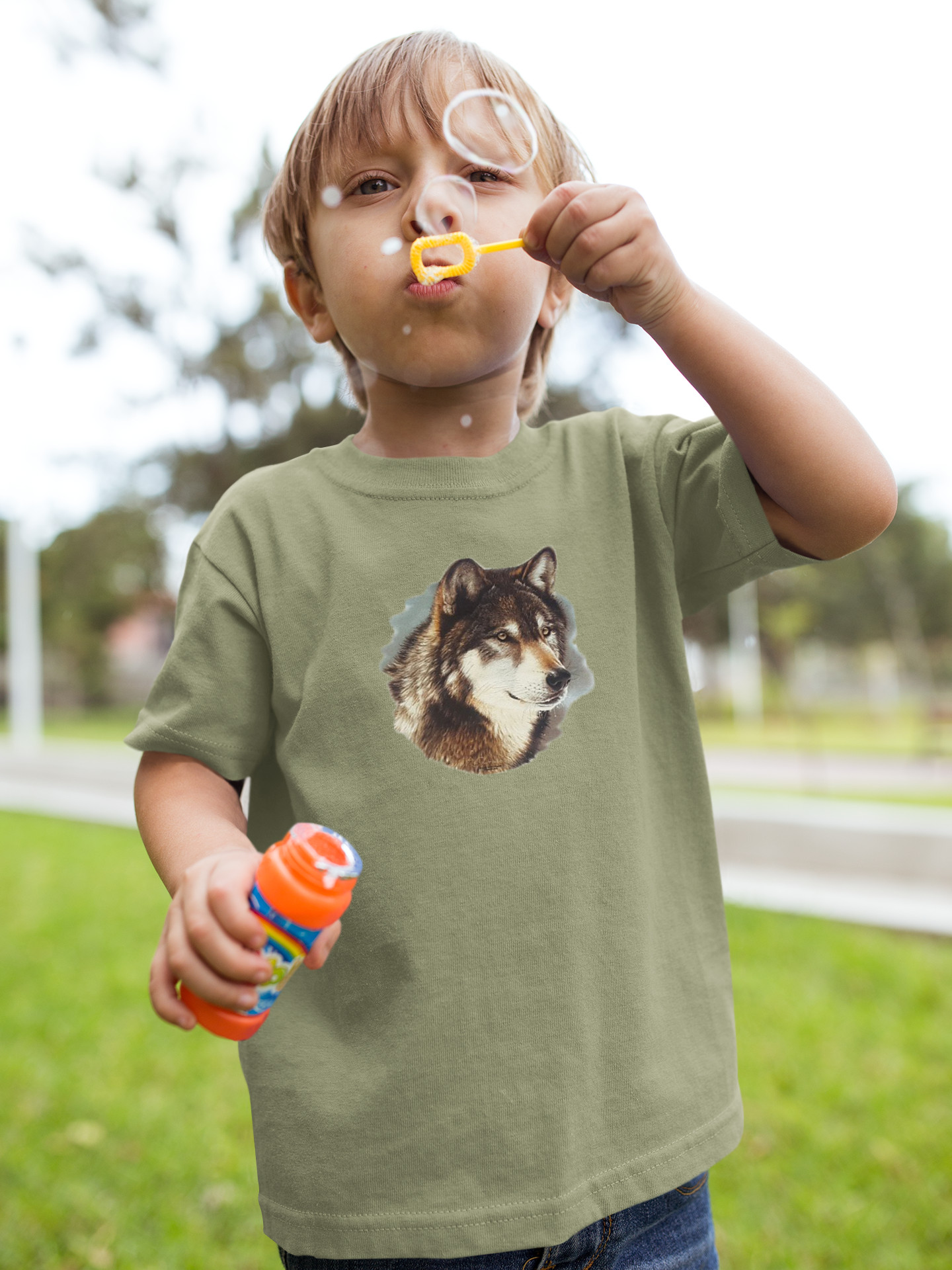 Detské tričko s krátkym rukávom s poľovníckym motívom Vlk FVA pre malých dobrodruhov, ktorí majú radi zvieratka a prírodu.