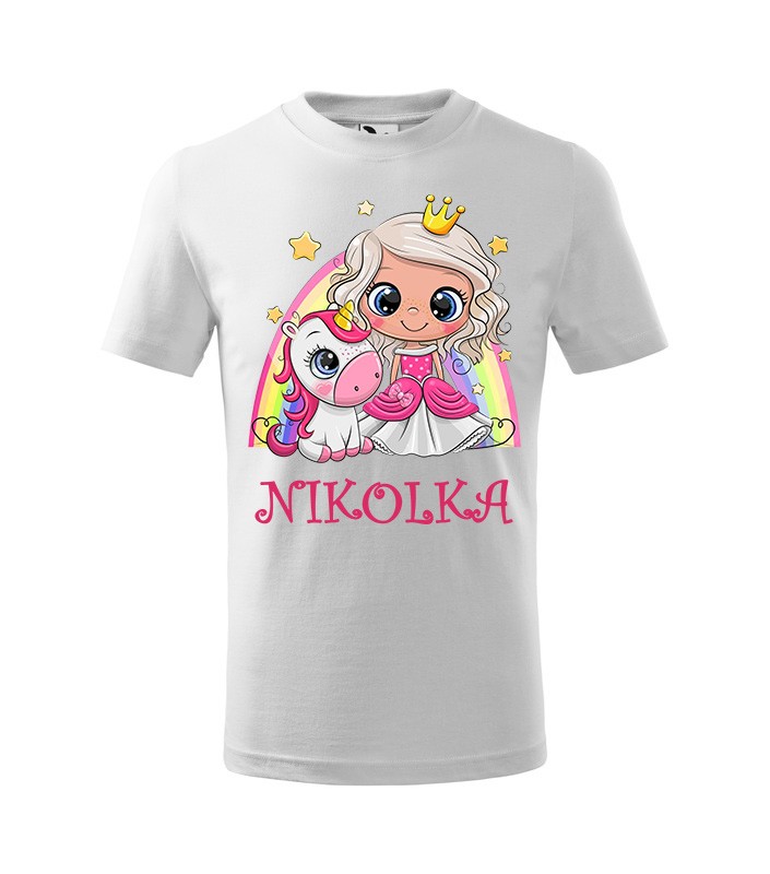 Úvod » Oblečenie » Detské » Tričko krátky rukáv » Rozprávkové » Tričko s rozprávkovým motívom Jednorožec dúha Biela 158