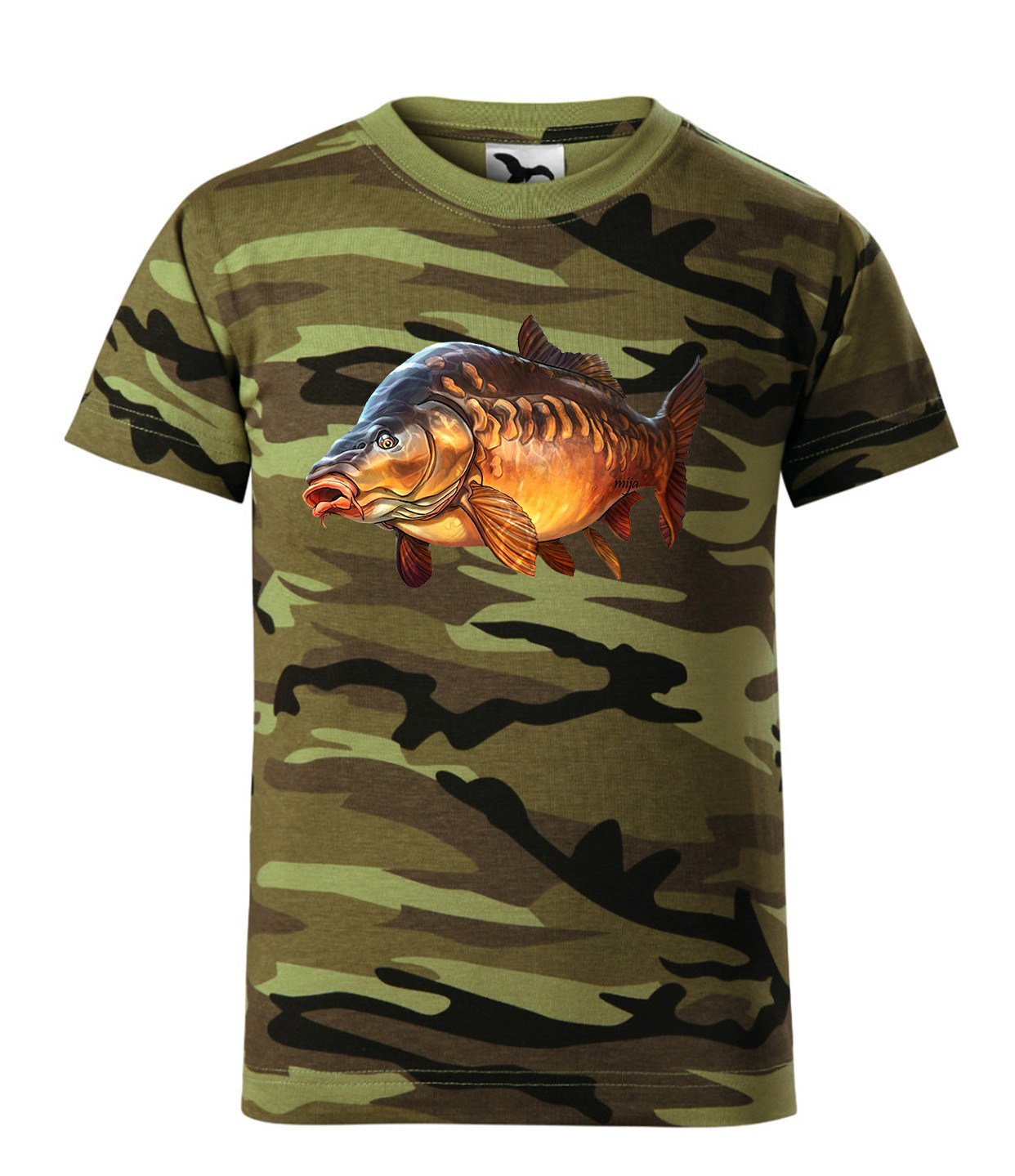 Detské tričko s rybárskym motívom Kapor FK2 pre malých dobrodruhov, ktorých koníčkom je rybárčenie a pobyt v prírode. Tričko vyrobené zo 100% bavlny s hmotnosťou 160g je ľahké, priedušné a pohodlné na nosenie pre aktívne deti.