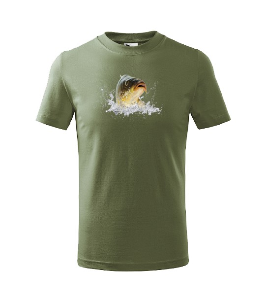 Detské tričko s rybárskym motívom Kapor FK3 pre malých dobrodruhov, ktorých koníčkom je rybárčenie a pobyt v prírode. Tričko vyrobené zo 100% bavlny s hmotnosťou 160g je ľahké, priedušné a pohodlné na nosenie pre aktívne deti.