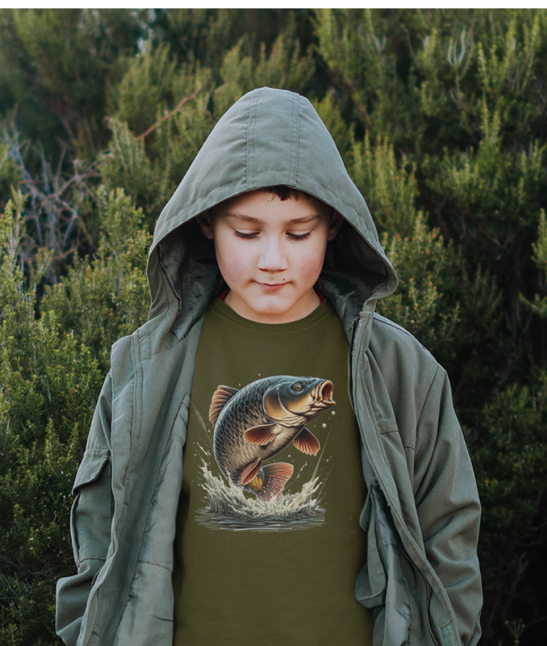 Detské tričko s rybárskym motívom Kapor FKN2 pre malých dobrodruhov, ktorých koníčkom je rybárčenie a pobyt v prírode. Tričko vyrobené zo 100% bavlny s hmotnosťou 160g je ľahké, priedušné a pohodlné na nosenie pre aktívne deti.
