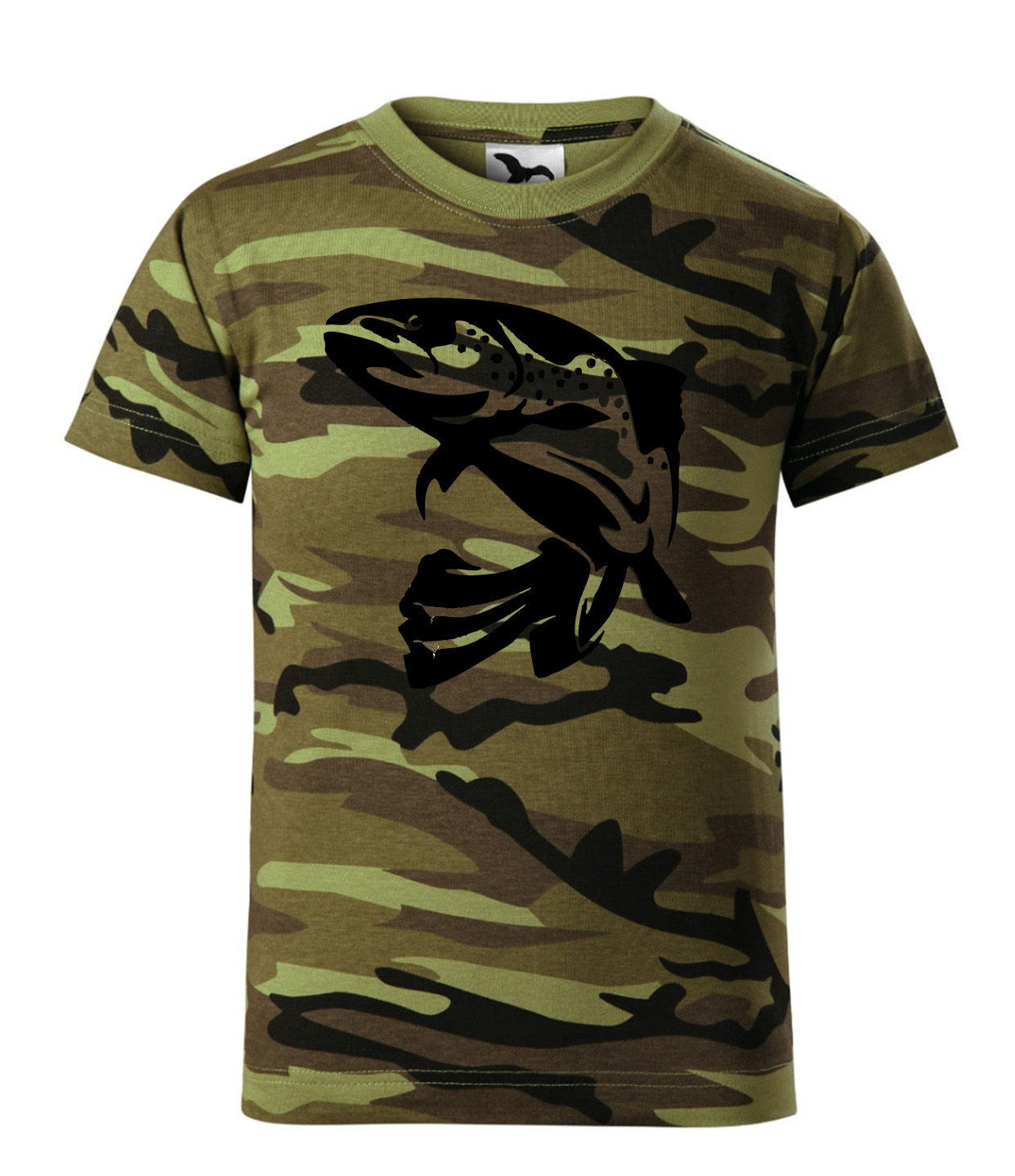 Úvod » Oblečenie » Detské » Tričko krátky rukáv » Poľovnícke Rybárske » Tričko s rybárskym motívom Pstruh ČP2 Maskáčová 134