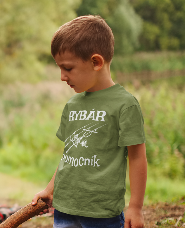 Detské tričko s krátkym rukávom s motívom Rybár pomocník pre malých dobrodruhov, ktorí majú radi a prírodu.