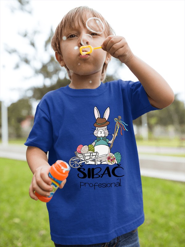 Detské tričko s vtipným veľkonočným motívom Šibač profesionál. S hmotnosťou 160g a zložením z 100% bavlny je toto tričko ľahké, priedušné a pohodlné na nosenie, čo je dôležité pre aktívne deti.