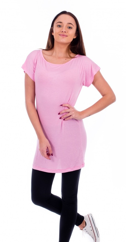 Kvalitné dámske tričko/šaty s voľným strihom s bočnými švami, lodičkovým výstrihom a kimonovými rukávmi. Dĺžka je pod úroveň bokov. Doporučujeme sušiť vo vodorovnej polohe. Prateľné na 30°C. Dostupné veľkosti XS-2XL. Farebné prevedenie: biela, mätová, ružová, purpurová, červená, limetková.