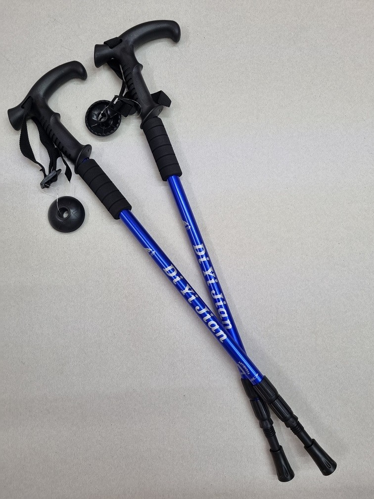 Trekingové palice na turistiku so zahnutou rúčkou. Výškovo nastaviteľné odpružené palice s antishock systémom zaisťujú správne držanie tela pri chôdzi. Nastaviteľná dĺžka je 65 až 135 cm. Má nastaviteľné pútko na plastovej rukoväti. V balení sa nachádzajú dve turistické palice s plastovou koncovkou vhodnou do zasnežených, či piesočnatých oblastí.