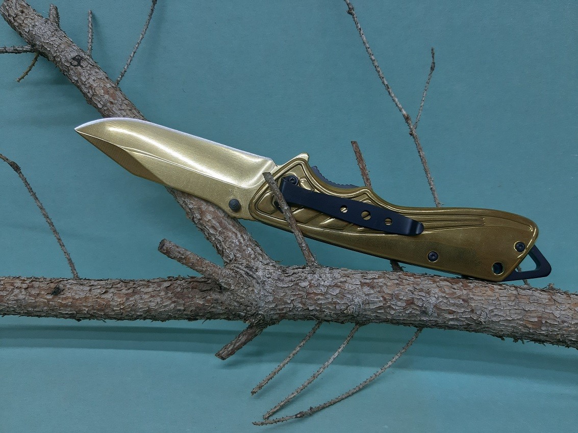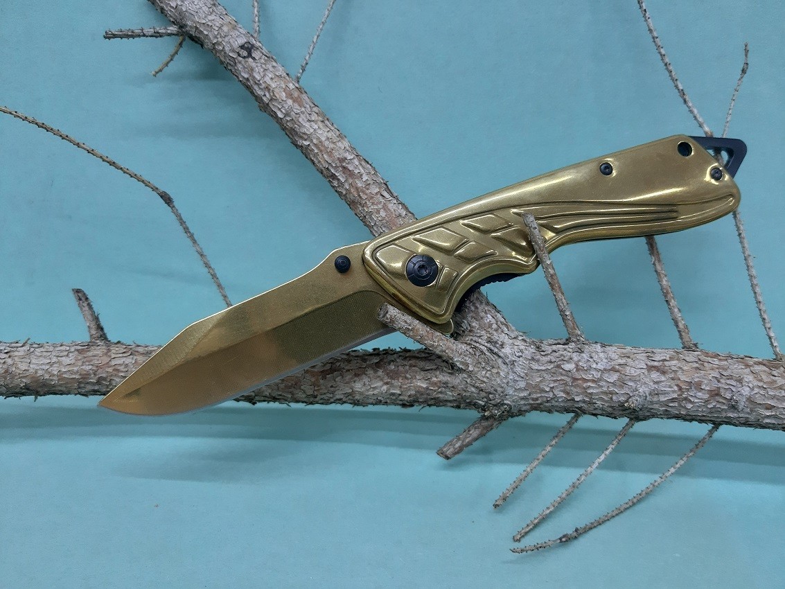 Úvod » Do prírody » Nože » Zatváracie nože » Ostatné nože » Zatvárací vreckový nôž zlatý +klip 23cm/9,5cm